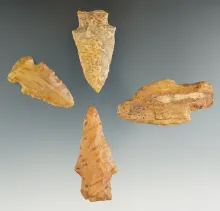 Set of four assorted points made from petrified wood found in East Texas and Louisiana. |