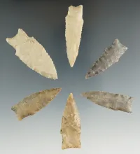 Set of stemmed points found in Texas, largest is 2 1/16". |