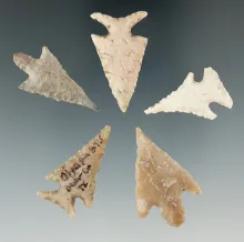 Set of five nicely styled Texas bird points/arrow points in excellent condition. |