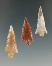 Set of 3 Columbia River Arrowheads, largest is 1 1/4". Found in Goldendale, Washington. |