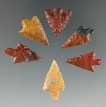 Set of 6 very nice Assorted Columbia River Arrowheads found in Oregon and Washington. Largest is 1".