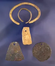 3 Drilled Metal Pendants, ring and bracelet from the Bill Peterson Collection. |
