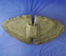 5 3/8" Crescent Bannerstone preform made from banded slate found in Miami Co., Ohio. OHIO 110.00