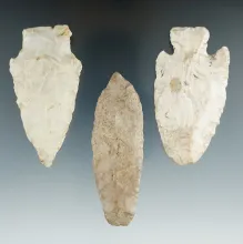 Set of three Midwestern Flint artifacts, largest is 3 1/8". 55.00