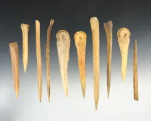 Group of 10 assorted bone awls found in New Mexico, a couple have damage. Largest is 6". | NEW MEXICO | 110.00 | |