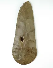 10 1/4" Spade made from Mill Creek Chert. Missouri. Excellent use wear to the bit. MISSOURI 625.00