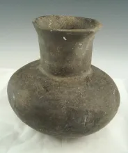5 1/4" Tall Solid Mississippian Shell Tempered Clay Jar with suspension holes by rim. Shipley. |