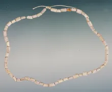 12" Purple & White Shell Beads found at the Dann Site in Lima, Monroe Co., New York. |