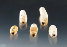Set of 5 Shell Barrel Beads found at the Dann Site in Lima, Monroe Co., New York. |