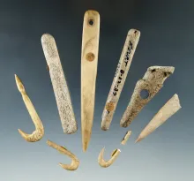 Set of 8 Assorted Bone artifacts found at the Feurt Village Site, Scioto Co., Ohio. Including 3 Fish OHIO 375.00