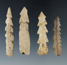 Set of four Bone Harpoon Tips found in New York, largest is 2 11/16" Ex. Howdy Lang. NEW YORK 200.00