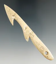 4 1/8" double Barb Alaskan Inuit harpoon tip with engraved images on one side. ALASKA 110.00