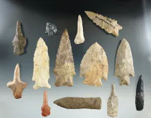 Nice group of 13 assorted artifacts from the Dr. Stanley Copeland collection. Largest is 3 5/8". 350.00