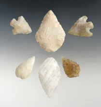 Set of six assorted Western U. S. flaked artifacts. Largest is 2". |