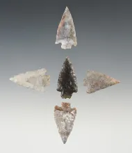 Set of five assorted points found in the western U. S. Largest is 1 5/16". |