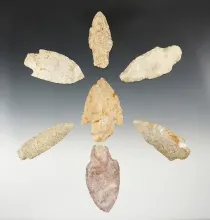 Ex. Museum! Set of 7 Big Sandy points found in the Midwest. The largest is 2". |