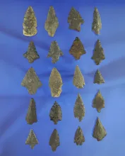 Set of 20 assorted arrowheads found in northern California, largest is 1 3/16". | CALIFORNIA | 32.50 | |