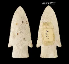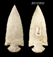 3 13/16" Dovetail made from Burlington Chert. Found in Jersey Co., Illinois. Very well flaked. |