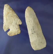 Pair of artifacts - Pike County Illinois including a 4 11/16" knife & 3 5/8" Thebes - very restorabl