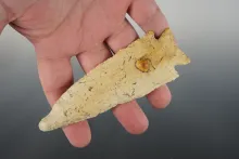 2 1/4" Paleo Beaver Lake made from Burlington Chert. Found in Illinois. Bennett COA. |