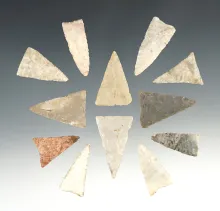 Set of 12 nice Illinois Triangle points in great condition. The largest is 1 7/16". |