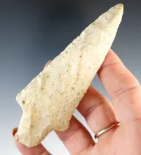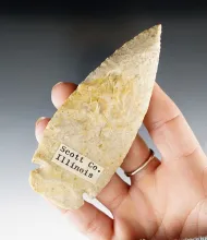 3 1/2" Archaic beveled Thebes point found in Calhoun Co., Illinois. |
