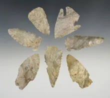 Set of 7 nicely made points made from Indiana Green (Attica chert). Found in Parke Co., Indiana. |