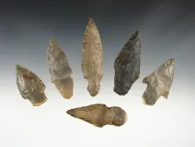 Set of 6 well patinated points found in Harrison Co., Indiana by the Bob Crosier family. INDIANA 65.00