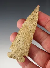 2 5/8" beautifully flaked early Dalton recovered in Indiana with nice mineral deposits on surface. |