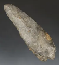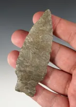Thin and exceptionally well flaked 2 3/16" Pelican Lake found in Kansas. Comes with a Motley COA. |