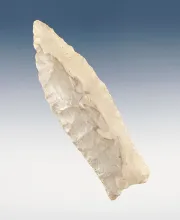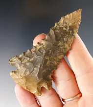 Exceptional flaking on this 2 1/4" Decatur Fracture-Base found in Kentucky. Sonora Flint. |