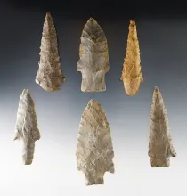 Set of 6 nice points found by Joseph Dillion in Calloway Co., Kentucky. The largest is 3 3/16". | KENTUCKY | 35.00 | |