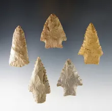 Set of 5 well patinated points found by Joseph Dillion in Calloway Co., Kentucky. |