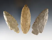 Set of three flint knives, largest is 3 5/8". Found in Davies Co., Kentucky, by James Thompson. | KENTUCKY | 65.00 | |