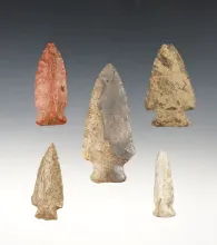Set of 5 nicely made points found in Indiana and Michigan. The largest is 2 13/16". | MICHIGAN | 45.00 | |