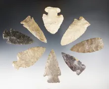 Set of 8 nice assorted points found in Indiana and Michigan. The largest is 2 5/8". |