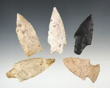 Set of 5 well made points from the Missouri/Illinois area. The largest is 3 5/16". |