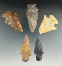 Set of five assorted Missouri arrowheads, largest is 3 1/16". | MISSOURI | 50.00 | |