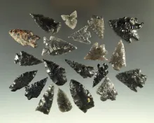 Group of 20 assorted obsidian arrowheads found in Nevada. Largest is 1 5/16". NEVADA 37.50