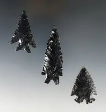 Set of 3 nice Nevada points including a 1 9/16" Elko Eared. All are made from Obsidian. |