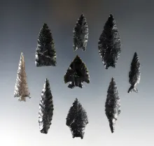 Set of 9 assorted Nevada points in nice condition. The largest is 1 7/8". |