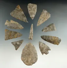 14 field found arrowheads from Allegheny Co., New York. Largest is 1 15/16". |