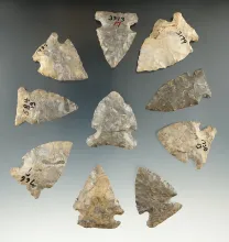 Set of 10 assorted arrowheads found in New York, largest is 1 3/4". | NEW YORK | 100.00 | |