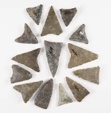 Set of 10 Kettle Points found in White Springs, Geneva, New York. The largest is 1 1/8". |