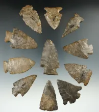 Group of 11 points found in Allegheny Co., New York, largest is 1 3/4". Ex. Howdy Lang. |