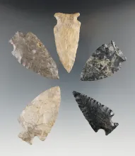 Set of five assorted nicely made points found in New York. Largest is 2 1/2". |