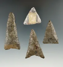 Set of four exceptional Triangle points found in New York, largest is 2 5/8". |