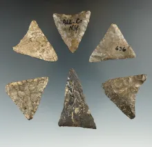 Set of six nice Triangle points found in New York, largest is 1 7/8". |