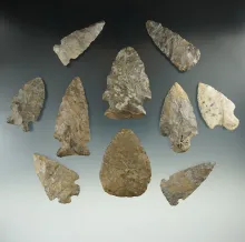 Set of seven assorted arrowheads found it Fort Hill, Wyoming Co., New York. Largest is 2 1/16" |