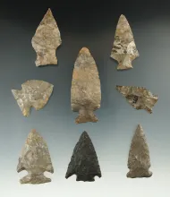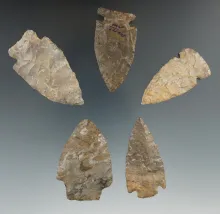 Group of five arrowheads found in New York, includes a very nice Intrusive Mound. |